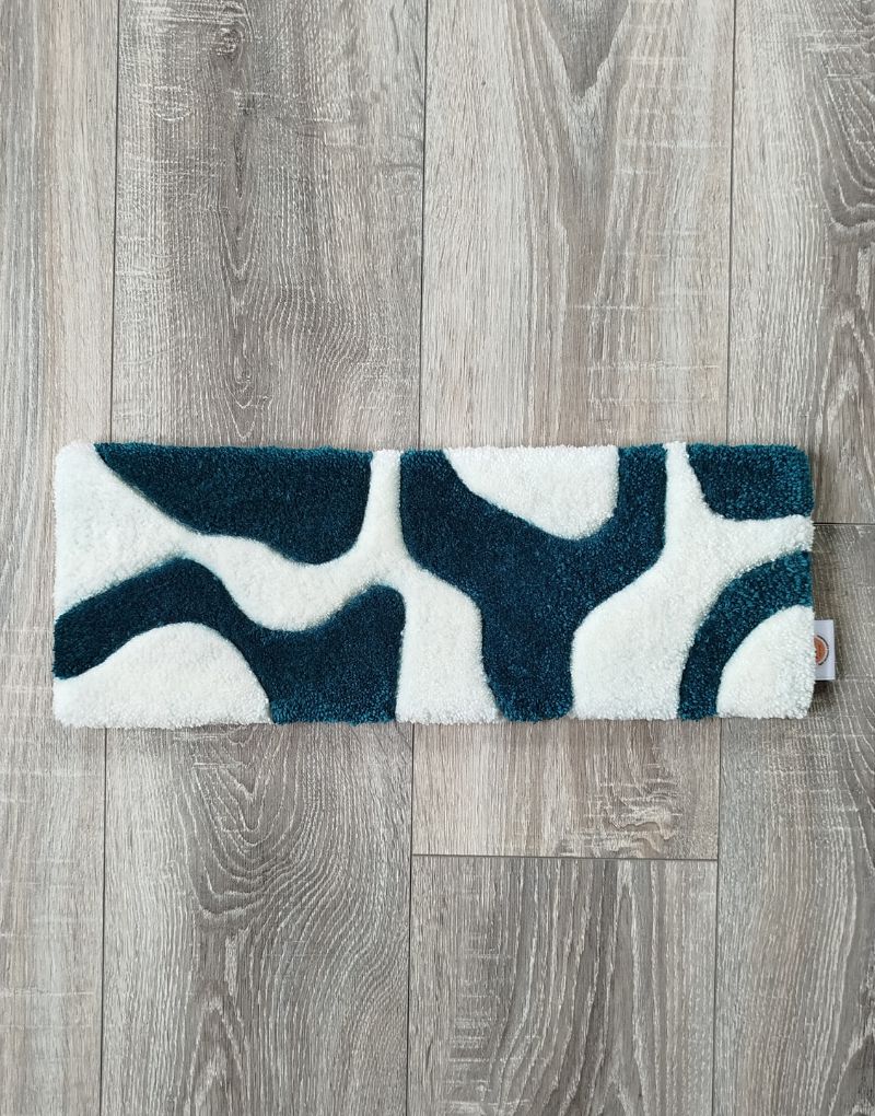 Un tapis de clavier abstrait moderne et artistique, entièrement tufté à la main pour un bureau unique.