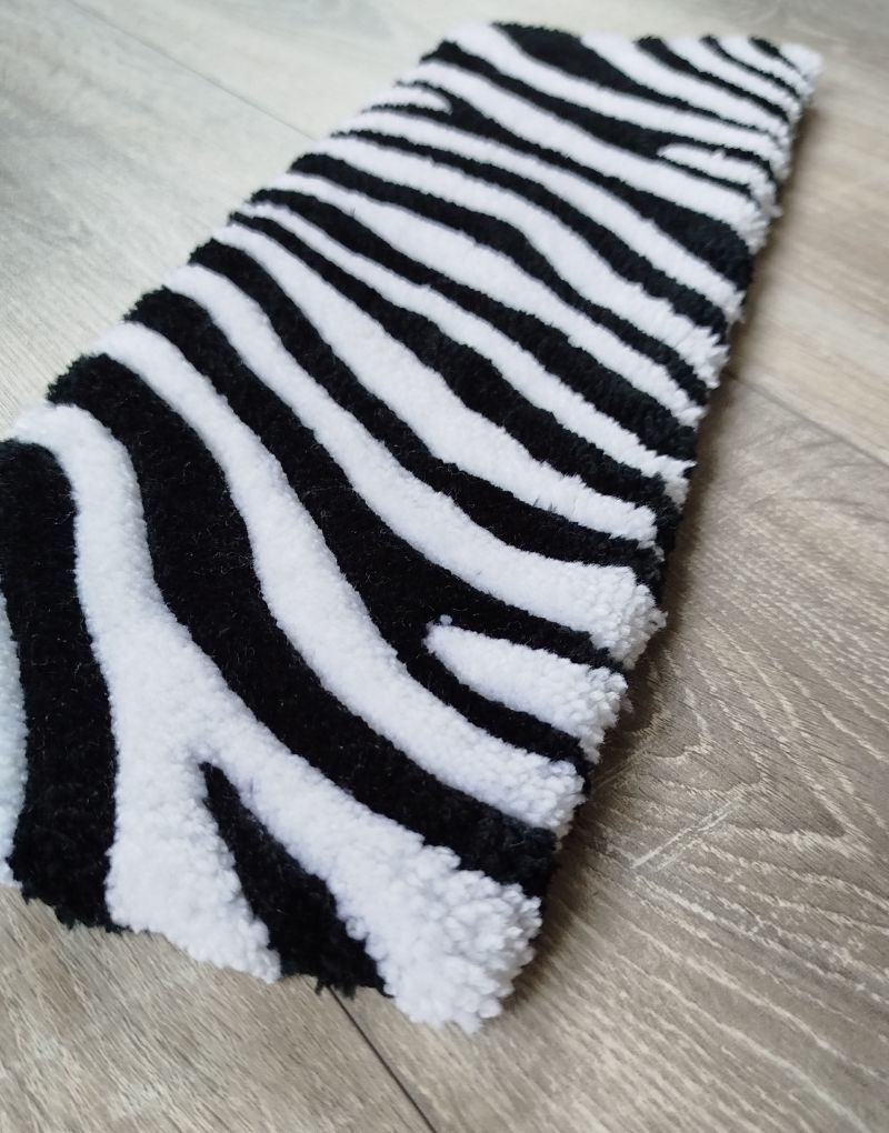 Un tapis de clavier zèbre graphique et élégant, entièrement tufté à la main pour apporter une touche sauvage et originale à ton bureau.